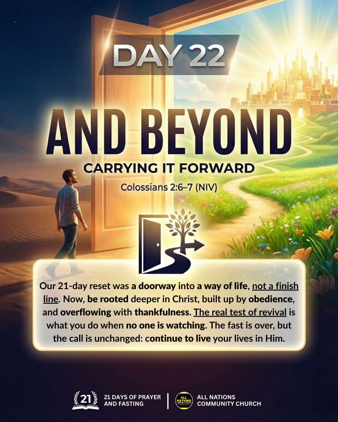 My prayer is that what God has begun in you during these 21 days will grow, deepen, and multiply. That your personal walk with Jesus will become more real and steady. That our life together as ANCC will become more united, more prayerful, more holy, more hungry, and more fruitful.